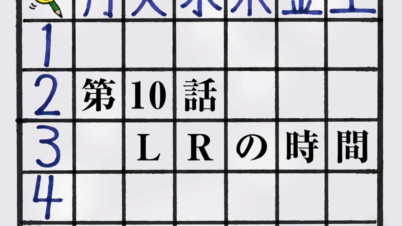 LR Time is the tenth episode of the Assassination Classroom anime series. The episode is scheduled to air on March 20, 2015.