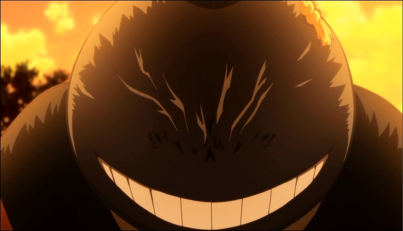 From time to time pieces of his old personality as The Reaper were visible such as when Ryoma Terasaka tried to sacrifice Nagisa to kill Korosensei and Korosensei menacingly threatened all of their families if they tried another self-harming attempt like that. In that moment, he resorted to his old method of teaching through fear. As the series progresses, his character development renders him more and more capable of true empathy and learning to use that empathy to teach lessons instead of through fear and reward like he had with his first student.