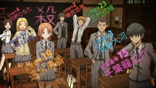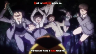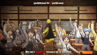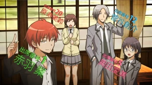 Seishun Satsubatsuron (青春サツバツ論) is the first opening theme of the Assassination Classroom TV anime series. The opening is sung by character VAs Mai Fuchigami (Nagisa), Aya Suzaki (Kaede), Nobuhiko Okamoto (Karma), Ryota Ohsaka (Isogai), and Shintarō Asanuma (Maehara) as a group called 3-nen E-gumi Utatan (Class 3-E Song Unit).